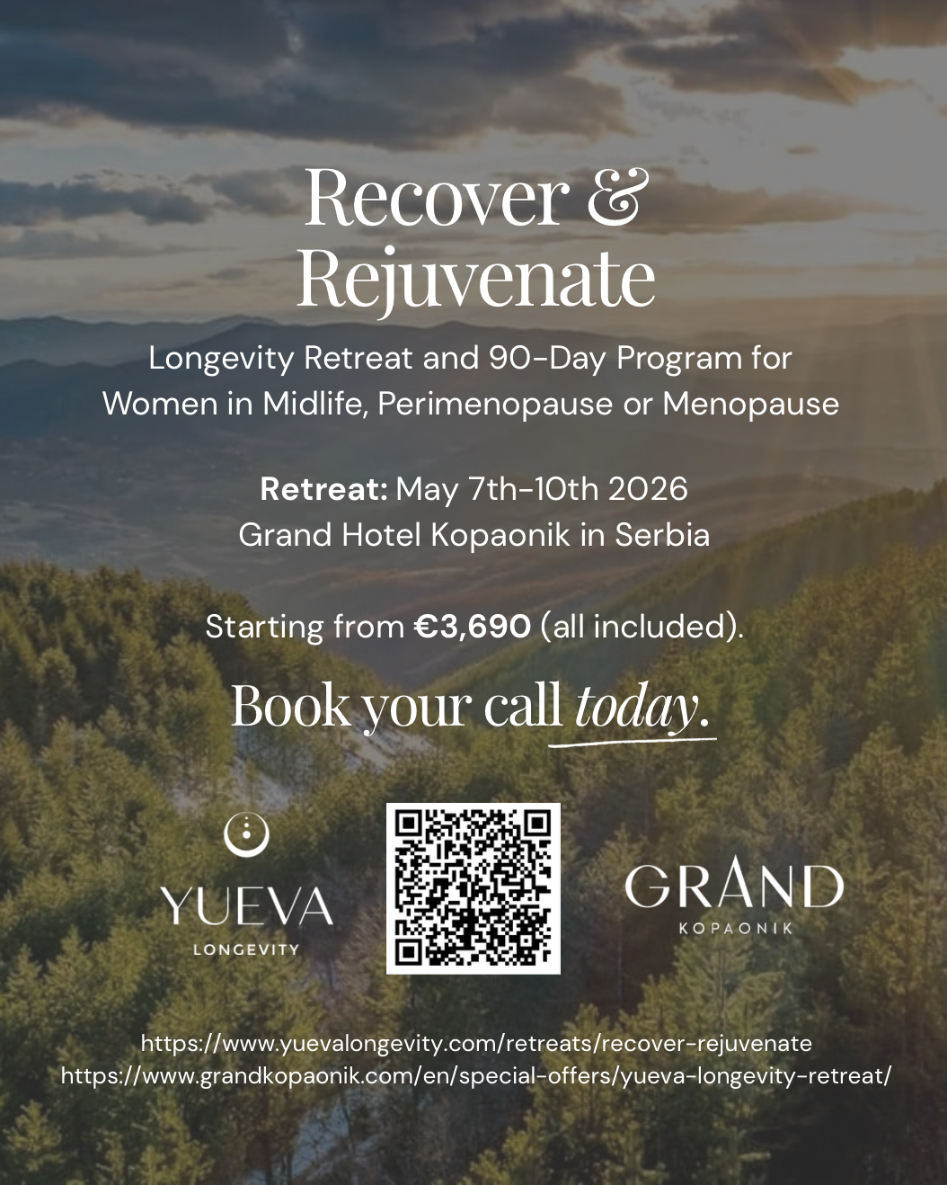 RECOVER & REJUVINATE, Kopaonik Serbia, 07.-10.05.2026 März 16, 2026 Ulrike Schablin https://www.yuevalongevity.com/retreats/recover-rejuvenate
